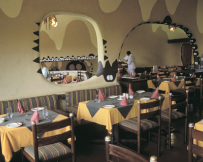 spectacular restaurant, overlooking a water hole where a fantasia of